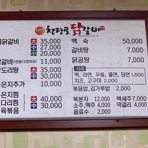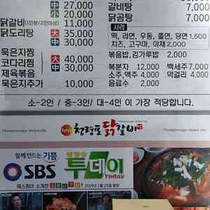 메뉴 닭갈비 11,000원 물닭갈비 대 35,000원 물닭갈비 중 27,000원 물닭갈비 소 20,000원