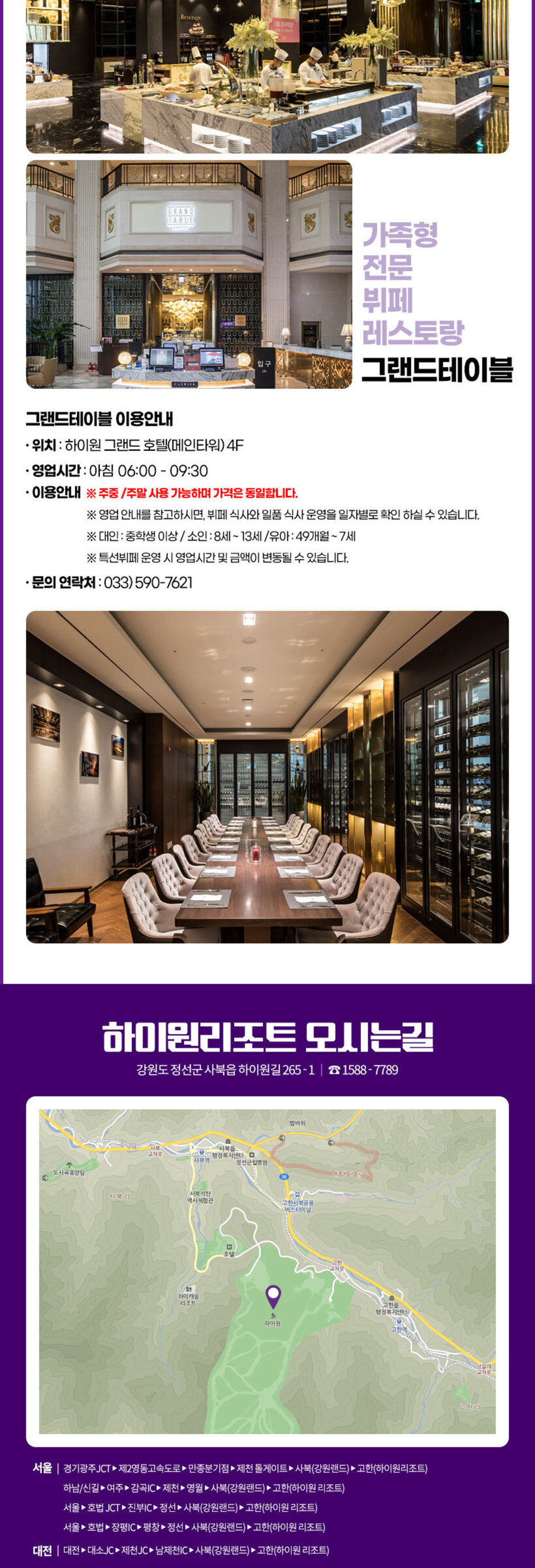 예약 문의 연락처 전화번호: : 033-591-3001