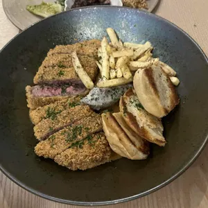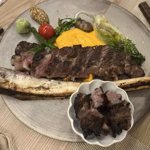 우대갈비, 등갈비튀김, 도미솥밥, 토마토와 브라타치즈, 사시미 모둠, 대구스테이크와 바지락술찜, 가리비와 우니크림 파스타, 규카츠 키워드 점심식사, 저녁식사, 식사모임, 술모임, 접대, 회식, 데이트, 기념일, 가족외식, 캐주얼한, 고급스러운, 격식있는, 시끌벅적한, 무료주차, 개별룸, 대형룸