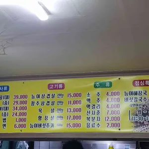 메뉴 삼겹살(200g) 11,000원 목살(200g) 12,000원 백반 5,000원 항정살 14,000원