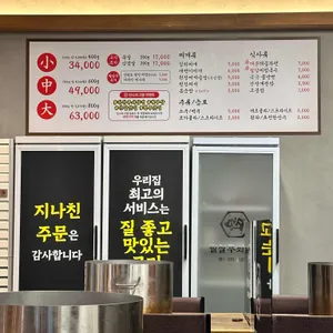 메뉴 필살무쇠파삼겹 대표 34,000원 목살 추가 17,000원 삼겹살추가 17,000원 고봉밥 1,000원