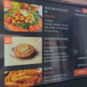 시그니처 대창아구찜(2인이상 가능) 대표 24,000원 곤이구이 아구찜(2인이상가능) 대표 24,000원 마라 우삼겹 아구찜 (2인이상 가능) 24,000원