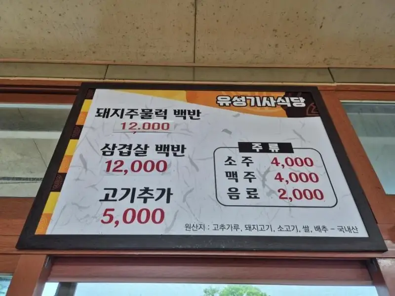 삼겹살 백반 1인분 만이천원 기사식당