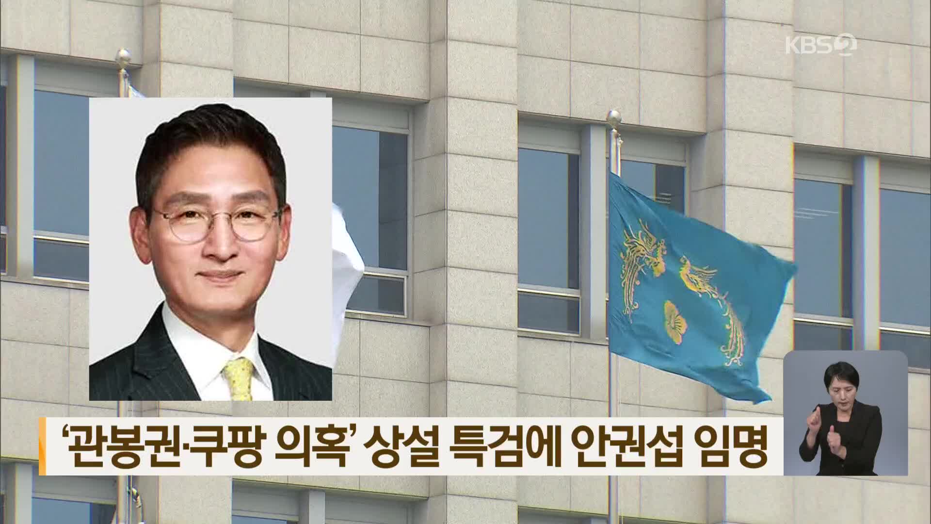 2025년 11월 17일, 이재명 대통령이 '건진법사 관봉권 띠지 분실 의혹', '쿠팡 퇴직금 미지급 사건 불기소 외압 의혹'을 수사할 상설특별검사에 안권섭 변호사(60·사법연수원 25기)를 임명했다.# 특검법에 따르면 상설특검은 특별검사와 특별검사보 2명, 파견검사 5명, 파견공무원·특별수사관 등 각 30명 이내로 꾸려진다. 안 특검은 완산고, 연세대 법학과를 졸업한 사법연수원 25기 출신으로 법무부 법조인력과 부장검사, 서울고검 공판부장, 춘천지검 차장검사 등을 거쳐 법무법인 대륜 대표변호사로 있다.